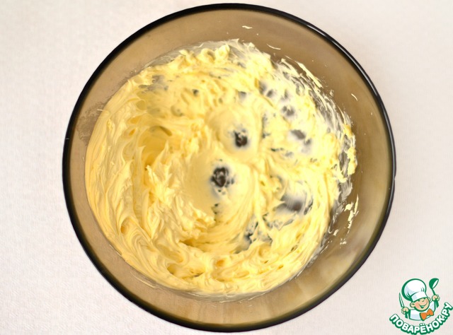 Все ингредиенты смешать, слегка взбить миксером. Я добавила 1 каплю синего пищевого красителя, но можно и не добавлять, тогда корона будет слегка золотистого цвета. -