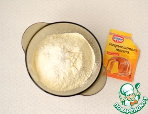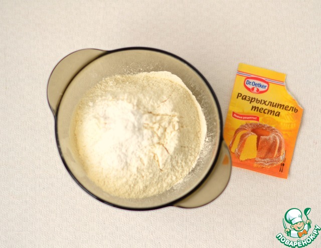 Муку просеять с разрыхлителем Dr. Oetker. -