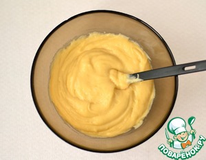 Влить горячее молоко тонкой струйкой при постоянном помешивании в яичную массу. Хорошо перемешать. Поставить на огонь и при постоянном помешивании варить до загустения. Масса будет как густая сметана.