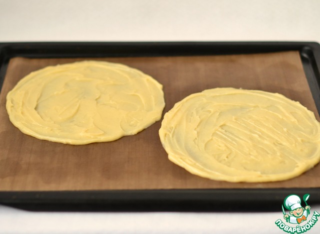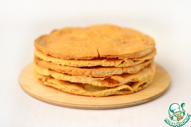 Выпекать при 190 гр. примерно 20-25 мин. Коржи должны подрумяниться. Если вы не допечете тесто, коржи сразу опадут, после того, как достанете их из духовки.
