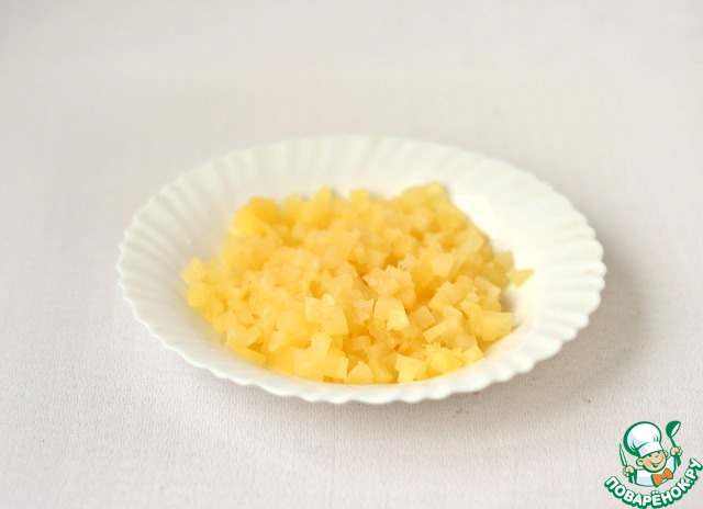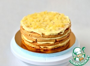 Собрать торт: корж+крем+ананасы и т. д. Верхний корж смазать кремом.