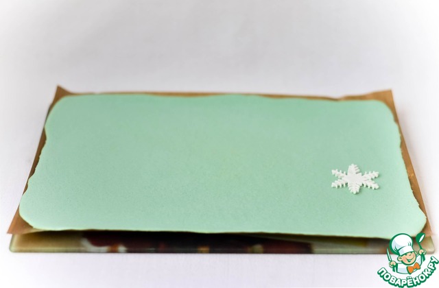 На каждую деталь сверху, т. е. на 2 острые грани, те, которые будут возвышаться над тортом, нанести сливки (удобнее из кондитерского мешка). Обсыпать кокосовой стружкой. С помощью айсинга прикрепить бусинки. Рецепт айсинга здесь: http://www.povarenok .ru/recipes/show/136 312/ -