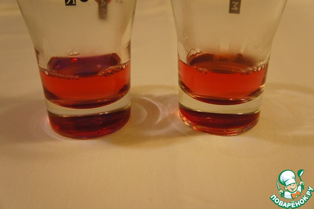 - Желе (у меня малиновое и ягодное. Разводила 1,5 пачки, немного осталось) — 1 пач.
