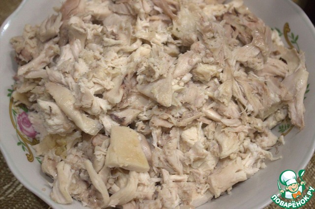 Время варки курицы в рецепте не учтено. Ее можно отварить накануне.