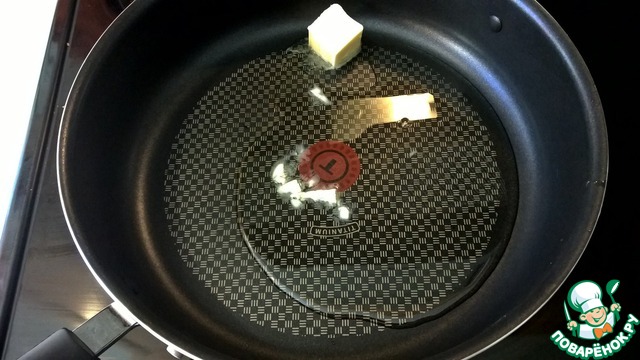 Разогреваем сковороду с добавлением оливкового (4 ст. л.) и сливочнного (30 г) масел.