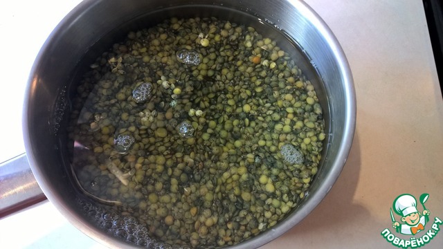 - Чечевица (я беру зеленую французскую чечевицу, потому, что она не сильно разваривается) — 200 г