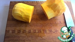 Разрезаем очищенную тыкву поперек