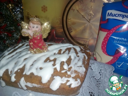 Соединяем мучную смесь с замоченной манной крупой и масляно-фруктовой эмульсией. Перемешиваем до полного соединения ингредиентов.