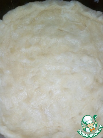 Через отведенное время, вынуть тесто и распределить по форме, формируя высокие бортики.