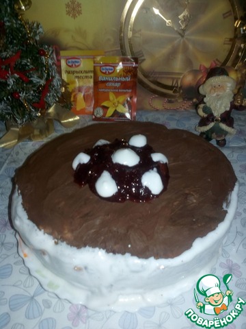 Поэтому верх пирога сделала со вкусом темного шоколада (1 часть пакета), а бока - белого (2 часть).