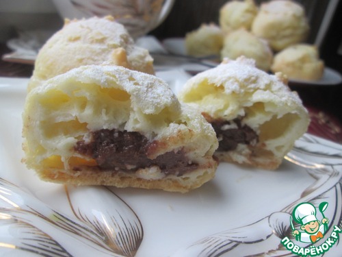Теперь можно начинять им профитроли. Этого количества крема хватает примерно на 40 - 45 небольших пирожных.