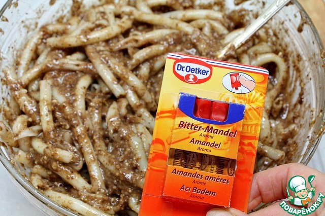 В макароны добавим начинку и тщательно перемешаем. Для придания начинке большего аромата воспользуемся миндальным ароматизатором "Dr. Oetker".