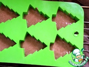 • Убрать в морозилку на час. Подмороженные елочки вынуть из формочек, аккуратно выворачивая их наружу.