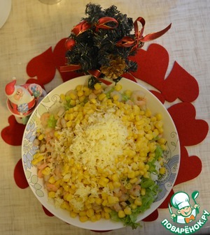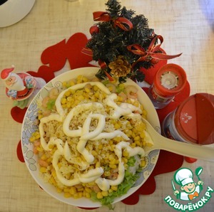 Салата получается довольно много. Отличная сытная, но нетяжелая закуска перед официальным застольем!