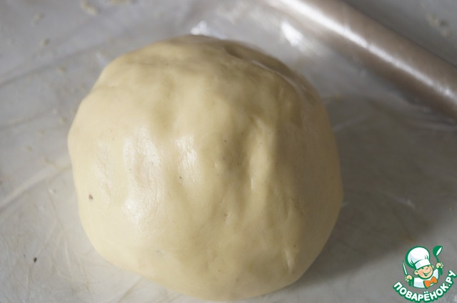 Постепенно добавить оставшуюся муку и замесить пластичное послушное тесто. Сформировать в шар и завернуть в пленку. Убрать в холодильник на пару часов, можно на ночь.