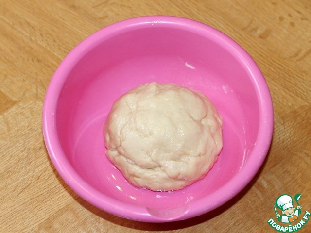 Прокручиваем ком теста рукой, так чтобы ком теста был в масле. При увеличение такого теста: