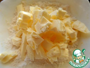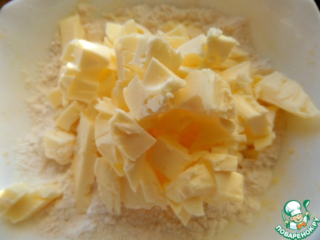 Делаем тесто на 2 рецепта или на 2 киша. Холодное масло кусочками отправить в муку.