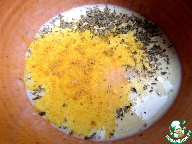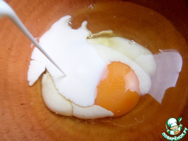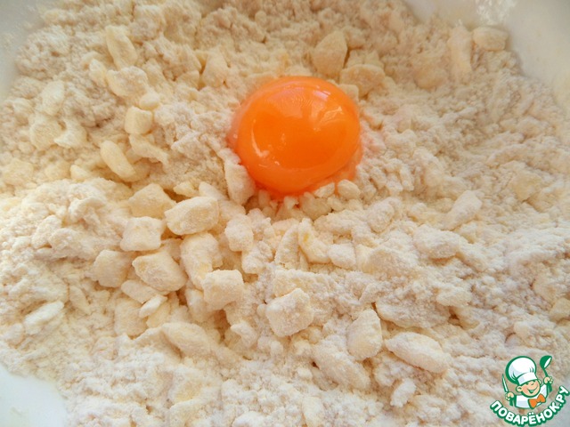 Для заливки смешать яйцо и белок, оставшийся от теста.