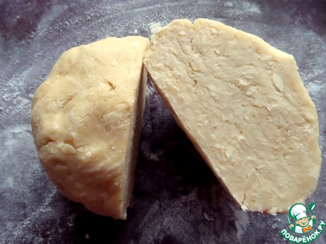 Замесить крутое тесто. Убрать в холодильник на час или в морозилку на 15 минут.
