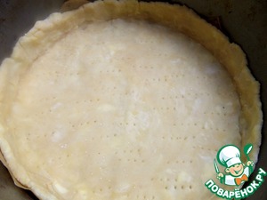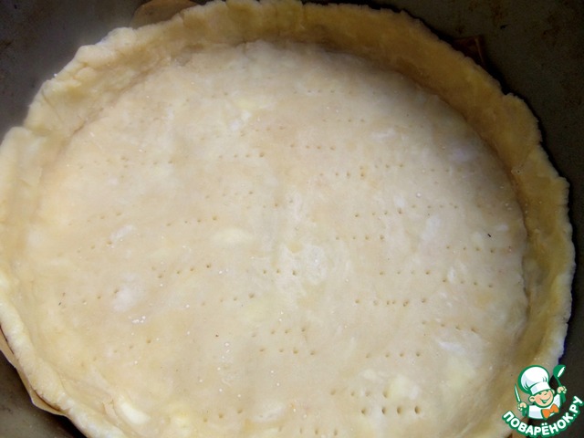 Перенести в съёмную форму 20 см в диаметре, наколоть дно вилкой.