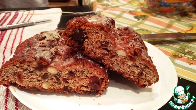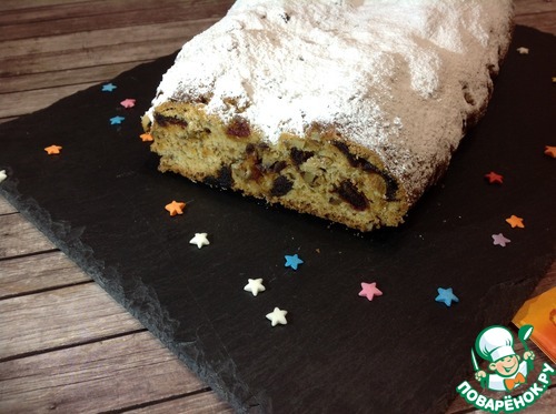 Штоллен (Stollen) - традиционный немецкий рождественский пирог с большим количеством цукатов, сухофруктов и орехов. Существует огромное количество разновидностей штоллена: творожный, маковый, миндальный, ореховый, марципановый и даже шампанский, сухофрукты для которого вымачивается в шампанском. Как правило, штоллен выпекается в начале декабря и оставляется созревать до Рождества 2-3 недели. За это время он пропитывается ароматами добавленных в него наполнителей и приобретает полный вкус. Я предлагаю один из вариантов приготовления штоллена, который не требует длительной выдержки, но тем не менее получается очень вкусным и ароматным. Угощайтесь!