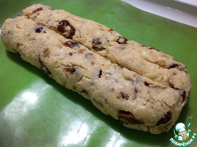 Из теста сформировать батон, посередине сделать углубление, выложить на противень, смазать молоком и поставить в заранее разогретую до 180 градусов духовку. Выпекать около 40-50 мин. Если штоллен будет подгорать, прикрыть его сверху фольгой.