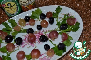 Виноград отделить от веток, оставив небольшую кисть на украшение.