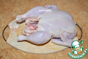Цыпленка промыть, убрать лишний жир из брюха (не выбрасывать!), обсушить бумажным полотенцем.