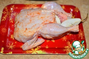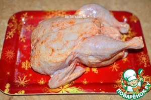 Натереть птицу солью и острым перцем со всех сторон и внутри.