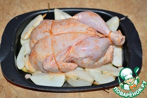 Рецепт «Цыпленок, запеченный с грушами под соусом»: