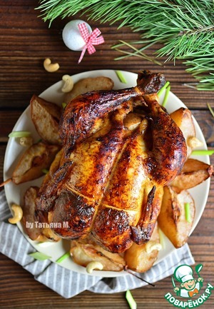 Цыпленок, запеченный с грушами под соусом
