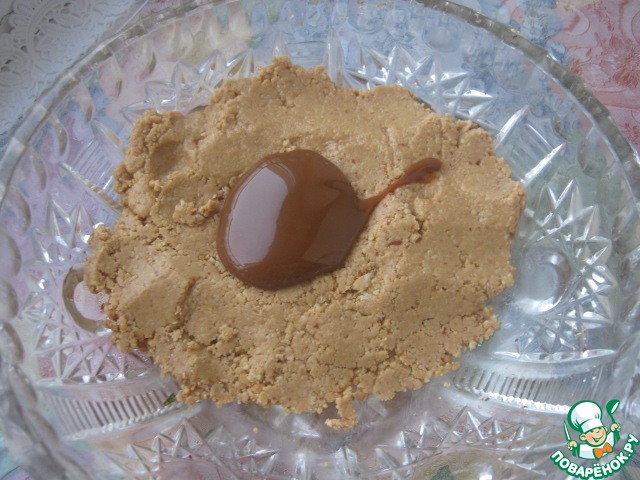 Берем примерно 25-30 гр. ореховой массы и заполняем формочку.