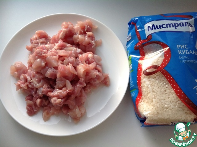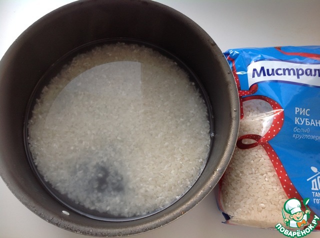 Рис (у меня рис "Кубанский" ТМ Мистраль) промыть, насыпать в кастрюлю, залить кипящей водой в соотношении к воде 1 : 1,5, довести до кипения и варить 3 минуты на сильном огне. Затем огонь убавить и варить до полной готовности.
