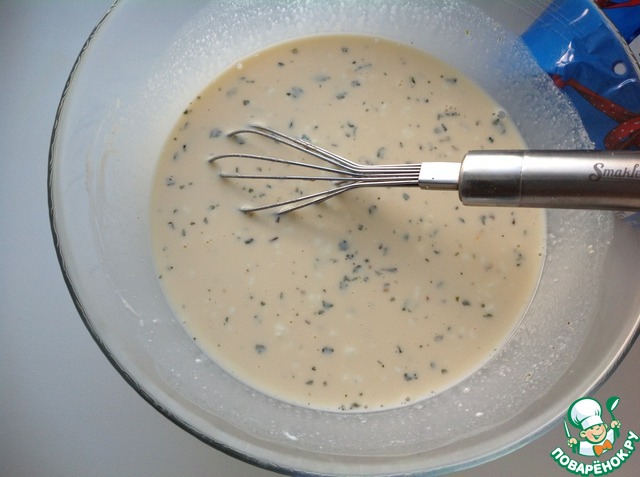 Взбить венчиком до однородной массы. Посолить, поперчить по вкусу, добавить любимых специй. Еще раз взбить.