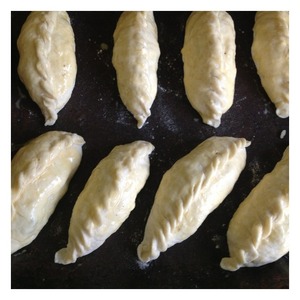 Сформировать пирожки, защипнув края.