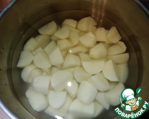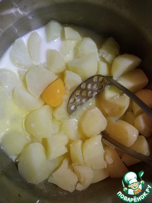В отваренную картошечку добавляем яйцо, масло и немного молока и делаем пюре.