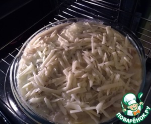 За 10 минут до готовности посыпаем тертым сыром. Прибавляем жар до 200-220 для зарумянивания сыра. Все!
