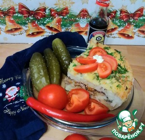 Разрезаем на щедрые куски. С любыми соленьями или свежим салатом улетает мгновенно. Особенно на свежем воздухе. Пирог особенно любим мужской половиной нашей компании. Угощайтесь! С Наступающим и веселых праздников!