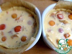 Заливку взбить и полить сразу начинку.