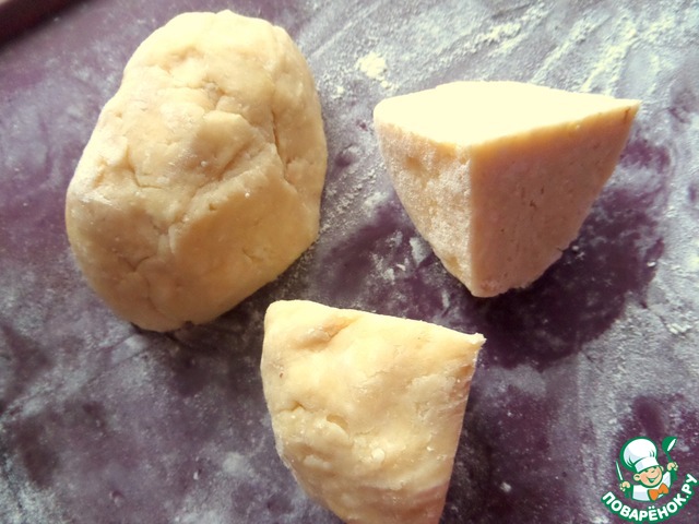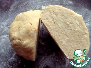 Замесить крутое масляное тесто. Убрать в холодильник на час или в морозилку на 15 минут.