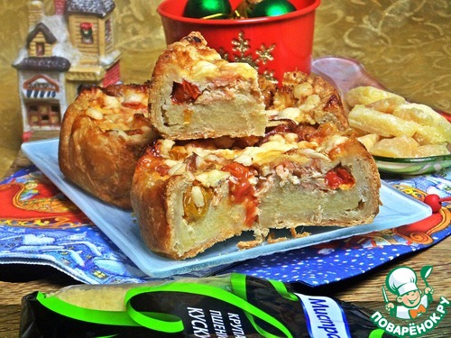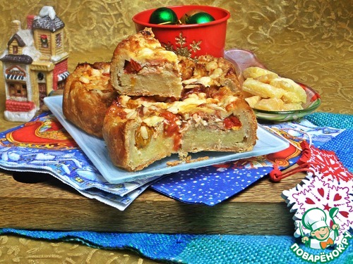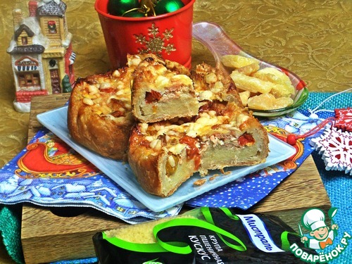 Продолжаю тему сытной зимней выпечки. Получилось вкусное песочное тесто, показываю ещё один вариант начинки с ним. Начинку придумала по своему вкусу. Подача на этот раз такая: два мини киша, но их тоже можно нарезать как пирог. На одного едока хватит половинки.