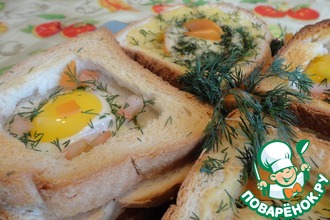 Хлеб нарезать на кусочки и поджарить в тостере.