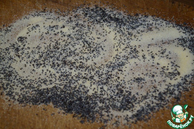 Сделать панировку для биточков. Манку смешать с маком в равных пропорциях.
