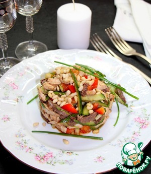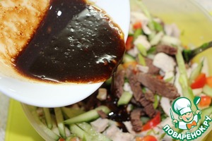 Сама мясо не ем, но оценить могу оригинальность салатика. Без майонеза, все компоненты вместе пляшут.