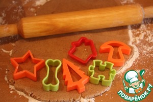Раскатать в пласт толщиной 2-3 мм, вырезать формочками печенье.
