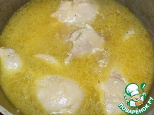 Ставим на огонь. После закипания снимаем образовавшийся шум и варим на небольшом огне 10-15 минут.