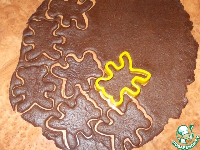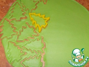 Затем раскатываем тесто в пласт толщиной 3-4 мм и вырезаем елочки