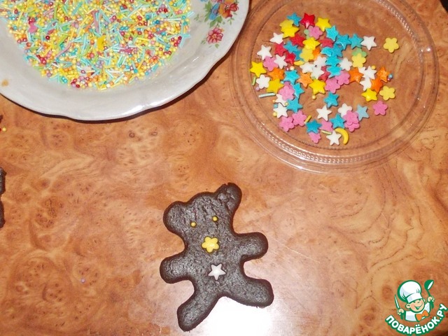 Печем 8-10 минут при 180 градусах. Посыпка держится хорошо! Не осыпается!