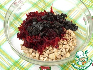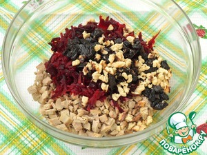 Рецепт «Салат с курицей, свеклой и черносливом»: