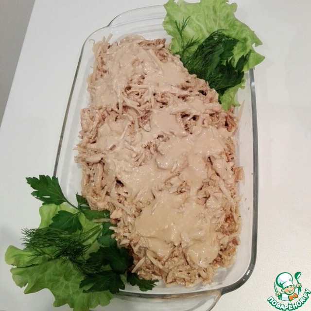 Вместо майонеза с соевым соусом заправила салат японским соусом Гомо.